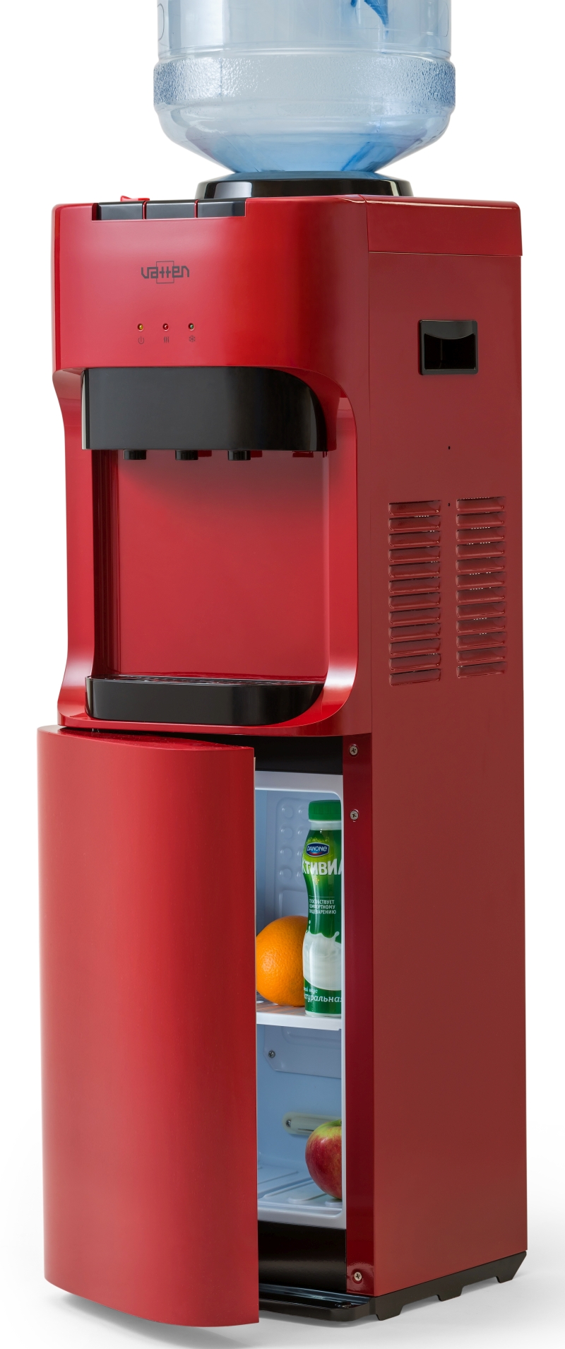 Напольный кулер для воды Vatten V45WKB. С компрессорным охлаждением и с высокой производительностью нагрева воды - до 6 литров в час (мощность водонагревателя 650 Вт). Кулер с холодильником, объем 20л. Высота стандартная - 928 мм. Прекрасно подойдет для использования в домашних условиях, для офиса, детских учреждений.Три крана, управление кнопками - горячая, холодная и вода комнатной температуры.Цвет корпуса белый. Бутылеприёмник, верхняя и передняя панели изготовлены из высококачественного, устойчивого к ультрафиолету ABS пластика. Боковые панели стальные. Баки горячей и холодной воды из нержавеющей стали. Три LED индикатора (включение питания, индикатор нагрева, индикатор охлаждения - power, hot, frost). Прекрасное соотношени цены и качества.